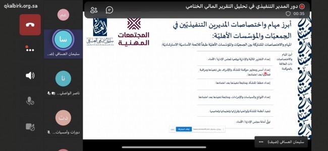 شرُفت الجمعية الخيرية لتحفيظ القرآن الكريم بالبرك بالمشاركة في ورشة عمل (دور المدير التنفيذي في تحليل التقرير المالي الختامي) وذلك ضمن لقاءات وورش عمل المجتمعات المهنية والذي تنظمه الجمعية الخيرية لتطوير العمل التنموي (تنامي) وذلك يوم الثلاثاء 15-08-2023