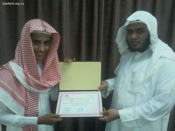 عبد الله هادي تهنئ إدارة الجمعية الخيرية لتحفيظ القرآن الكريم بمحافظة البرك الطالب / نايف إبراهيم العاطفي بحلقة الحباب بن المنذر - رضي الله عنه - بمسجد ابو بكر الصديق رضي الله عنه على إجتيازه المرحلية الأولى بتقدير " جيد جداً " متمنين له دوام التوفيق والتقدم وأن يكون ذلك عوناً له على طاعة الله تعالى.