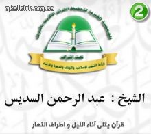 الحلقة الثانية ضمن البرامج القرآنية الرمضانية التي تقيمها الجمعية الخيرية لتحفيظ القرآن الكريم بمحافظة البرك ومن خلال برنامج " قرآن يتلى " نتشرف ان نكون معكم في حلقات قرآنية صوتية إستماعاً وتحميلاً ونسعد ان يكون معنا اليوم إمام الحرم المكي فضيلة الشيخ عبد الرحمن السديس وبإمكانكم زيارة الصفحة من هنا