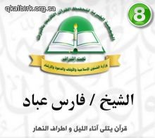 الحلقة الثامنة ضمن البرامج القرآنية الرمضانية التي تقيمها الجمعية الخيرية لتحفيظ القرآن الكريم بمحافظة البرك ومن خلال برنامج " قرآن يتلى " نتشرف ان نكون معكم في حلقات قرآنية صوتية إستماعاً وتحميلاً ونسعد ان يكون ضيفنا اليوم مزمار م مزامير آل داود القارئ الشيخ فارس عباد , بإمكانكم زيارة الصفحة من هنا