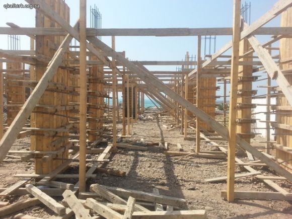 بفضل من الله وتوفيقه تم البدء في تخشيبة الأعمدهـ صباح اليوم الأربعاء 19 / 01 / 1436 هـ على أن يتم الصب بمشيئة الرحمن غداً او بعد غد , سائلين الله ان يكون الوقف رافداً من روافد الجمعية في تعليم كتاب الله لجميع الحلقات والدور النسائية.
