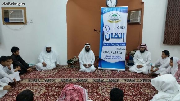 وقد استهدفت دورة اتقان في مرحلتها الاولى 16 طالبا من طلاب الحلقات تم تكريمهم جميعا في حفل تكريم أقيم بعد صلاة الجمعة بحضور مدير جمعية تحفيظ القران الكريم بمحافظة البرك الشيخ طالع الهلالي سلم فيها شهادات الدورة وهدايا لكل المشاركين وجوائز الفائزين في مسابقة الحديث الشريف ..