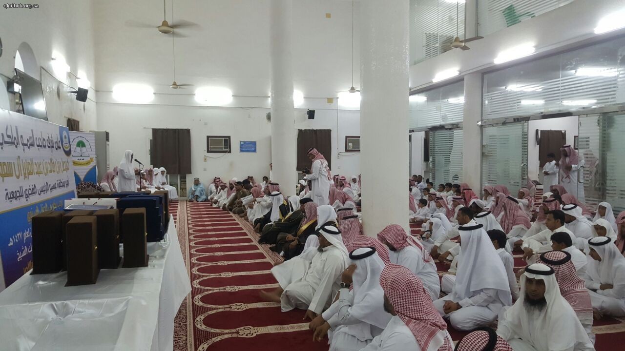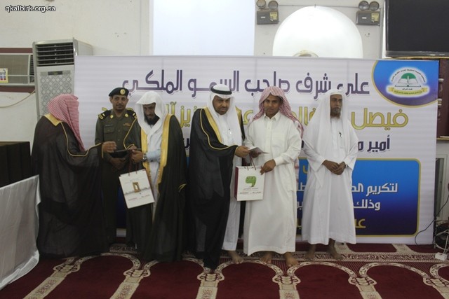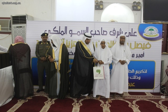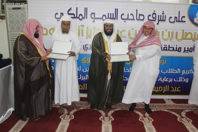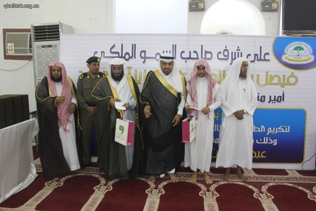 عبد الله هادي أقامت الجمعية الخيرية لتحفيظ القرآن الكريم بمحافظة البرك على شرف صاحب السمو الملكي الأمير فيصل بن خالد بن عبدالعزيز آل سعود - حفظه الله أمير منطقة عسير والرئيس الفخري للجمعية وبحضور ورعاية محافظ محافظة البرك الشيخ عبدالرحيم بن الحسين آل عبدهـ الهلالي مساء يوم الأربعاء 28-11-1437 هـ الحفل الختامي لأنشطة الجمعية للعام 1437 هـ وتكريم 21 حافظاً وحافظة لكتاب الله وبحضور فضيلة الشيخ إبراهيم محمد عيسى والشيخ عبدالعزيز الصوينع وفضيلة الشيخ الدكتور عمر بن سعود العيد عضو هيئة التدريس بجامعة الإمام محمد بن سعود الإسلامية بالرياض ورئيس مركز المرصد محمد الحسين آل عبده الهلالي ورئيس هيئة محافظة البرك الشيخ أحمد الحسين الهلالي ومنسوبي الدوائر الحكومية والمراكز التابعة للمحافظة , حيث بدأ الحفل بآيات من الذكر الحكيم , ثم كلمة لفضيلة رئيس الجمعية الشيخ حسان بن يحيى اليحياوي , ثم نماذج لتلاوات الطلاب وتقرير مرئي يروي مسيرة الجمعية ثم كلمة لفضيلة الشيخ إبراهيم محمد عيسى واستمع الحضور لنموذج آخر من تلاوات الطلاب ثم كلمة الطلاب ألقاها فضيلة الشيخ محمد بن أحمد البجادي و كان الختام مع كلمة لفضيلة الشيخ الدكتور عمر بن سعود العيد وبعد ذلك كان التكريم لأهل الفضل المعلمين والمعلمات ثم الطلاب والطالبات الحافظين لكتاب الله وللداعمين لانشطة وبرامج الجمعية , ولضيوف الشرف الكرام .