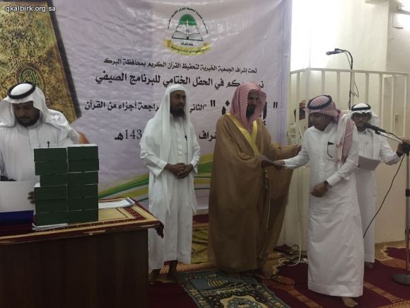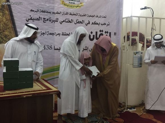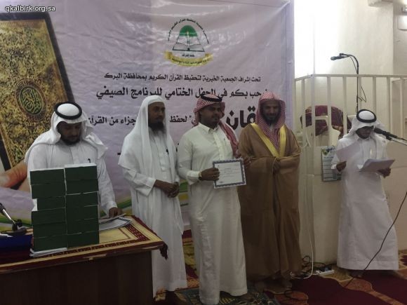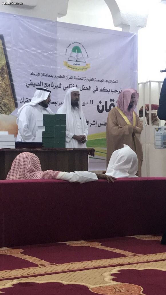 تحت اشراف الجمعية الخيرية لتحفيظ القرآن الكريم بمحافظة البرك أقام قطاع الحلقات بدبسا حفل تكريم الطلاب المشاركين في البرنامج الصيفي الثاني (إتقان لحفظ ومراجعة اجزاء من القران )١٤٣٨ وقد شرف الحفل رئيس الجمعية الخيرية لتحفيظ القرآن الكريم بمحافظة البرك فضيلة الشيخ حسان اليحياوي وفضيلة الشيخ الدكتور سعيد الشهراني والاستاذ هادي ابراهبم منجحي وجمع من أعيان القرية والداعمين ...