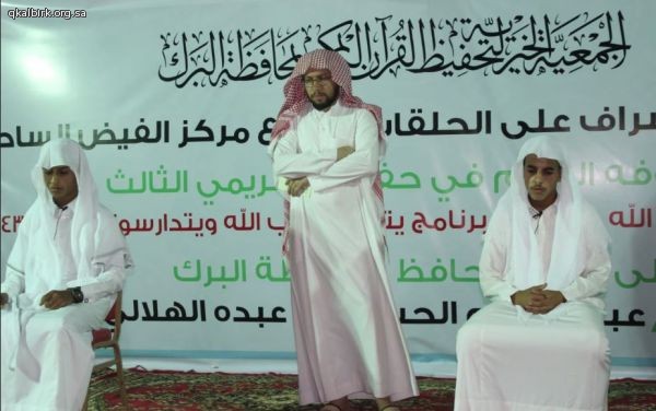 بدعم من مؤسسة سليمان بن عبدالعزيز الراجحي الخيرية أقام مجلس قطاع الحلقات بالفيض الساحلي التابع للجمعية الخيرية لتحفيظ القرآن الكريم بمحافظة البرك يوم الخميس 3-1-1440 هـ حفل تكريم ثمانية حفّاظ واختتام برنامج يتلون كتاب الله ويتدارسونه للعام الدراسي 1439 هـ وبرعاية وتشريف من محافظ محافظة البرك الشيخ عبدالرحيم الحسين آل عبده الهلالي وفضيلة الشيخ يحيى بن محمد فايع رئيس الجمعية الخيرية لتحفيظ القرآن الكريم بمنطقة عسير و فضيلة الشيخ أحمد بن مسفر القحطاني عضو مجلس إدارة جمعية التحفيظ بمنطقة عسير و فضيلة الشيخ إبراهيم محمد عيسى الهلالي قاضي استئناف بمنطقة عسير والشيخ سليمان علي غريب والشيخ حسن ماطر مدير جمعية تحفيظ محايل عسير والشيخ جابر الغنمي ومدير المعهد العلمي بمحايل عسير ابراهيم احمد الاحمري وبرفقته الشيخ ابراهيم الفلقي وبرفقته كل من الشيخ عبدالله محمد الحسين مدير معهد حريملاء سابقا ورئيس المجلس البلدي في حريملاء والشيخ محمد حسن السابطي مدير معهد القنفذة سابقا والشيخ احمد محمد مفرح مدير معهد ابها العلمي ممثل أوقاف بن ثالبة الشيخ محمد موسى العماري وبحضور عدد من منسوبي الدوائر الحكومية.
