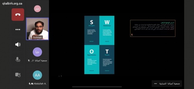 سعدت الجمعية الخيرية لتحفيظ القرآن الكريم بالبرك بحضور ورشة عمل بعنوان : الإعلام الرقمي وذلك يوم الثلاثاء 10-07-1444هـ الموافق 31-01-2023 م والتي أقامتها جمعية أجيالنا الشبابية وبالشراكة مع مجلس الجمعيات الأهلية بعسير والتي قدمها الأستاذ : سليمان الرميخان جاء ذلك ضمن برنامج تأهيل قيادات #القطاع_غير_الربحي