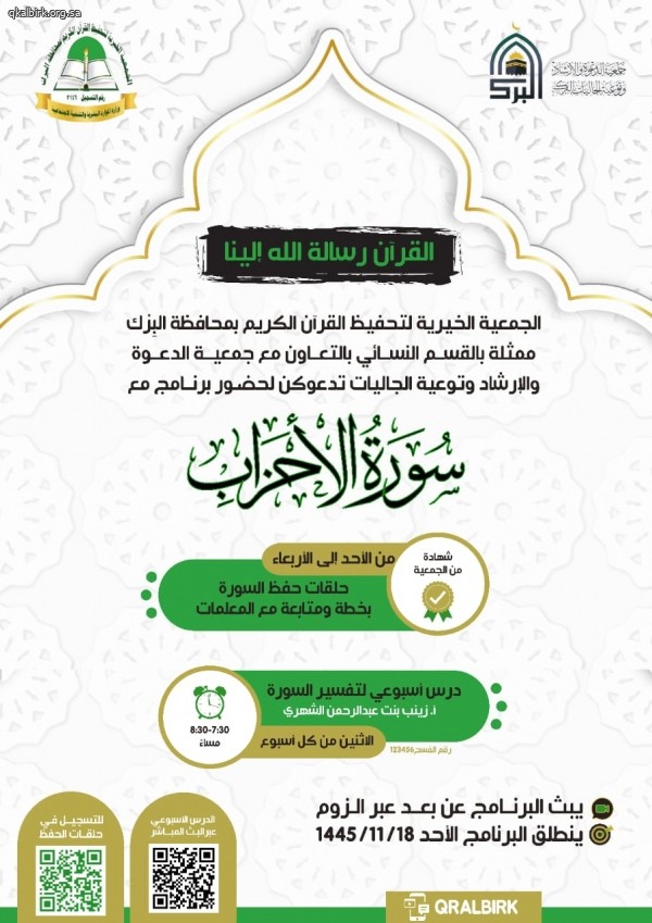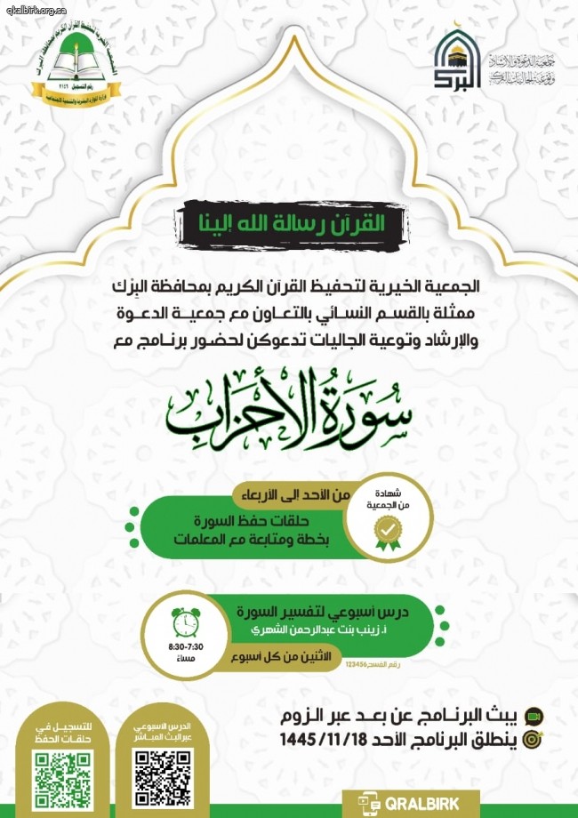 برنامج مع سورة الأحزاب بالتعاون مع جمعية الدعوة بالبرك essaher 12-05-2024 03:50 مساءً 0 0 233 القسم النسائي برنامج مع سورة الأحزاب بالتعاون مع جمعية الدعوة بالبرك